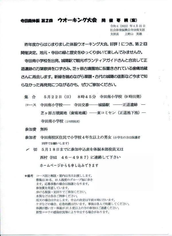 第2回 ウォーキング大会のご案内
